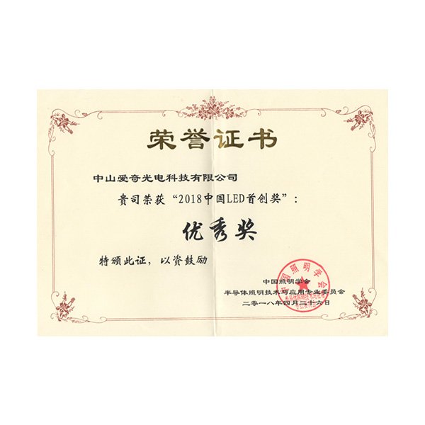 2018中國LED首創(chuàng)獎優(yōu)秀獎